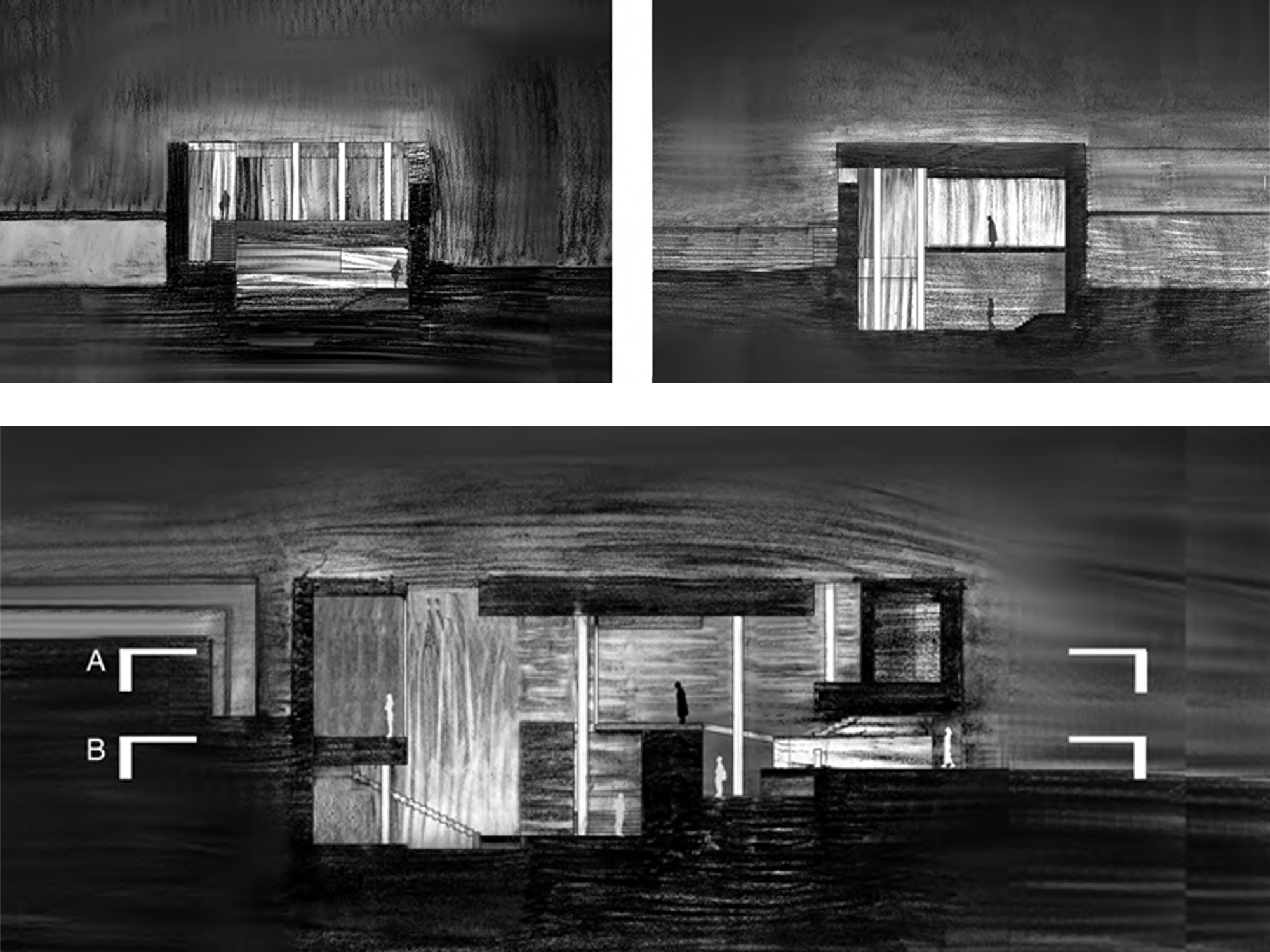 Students began with abstract and representational mark-making exercises, using drawing to translate sensory experiences and learn core tools of architectural representation.