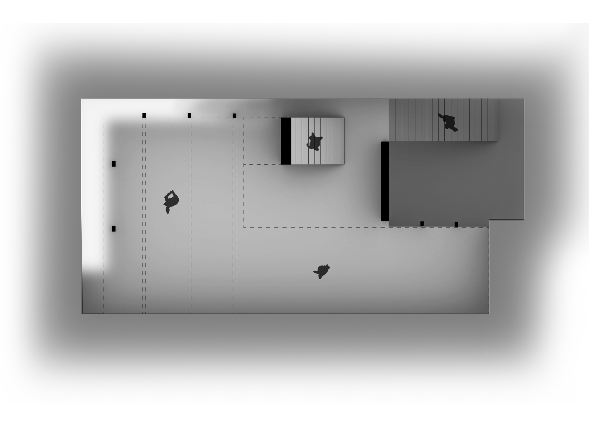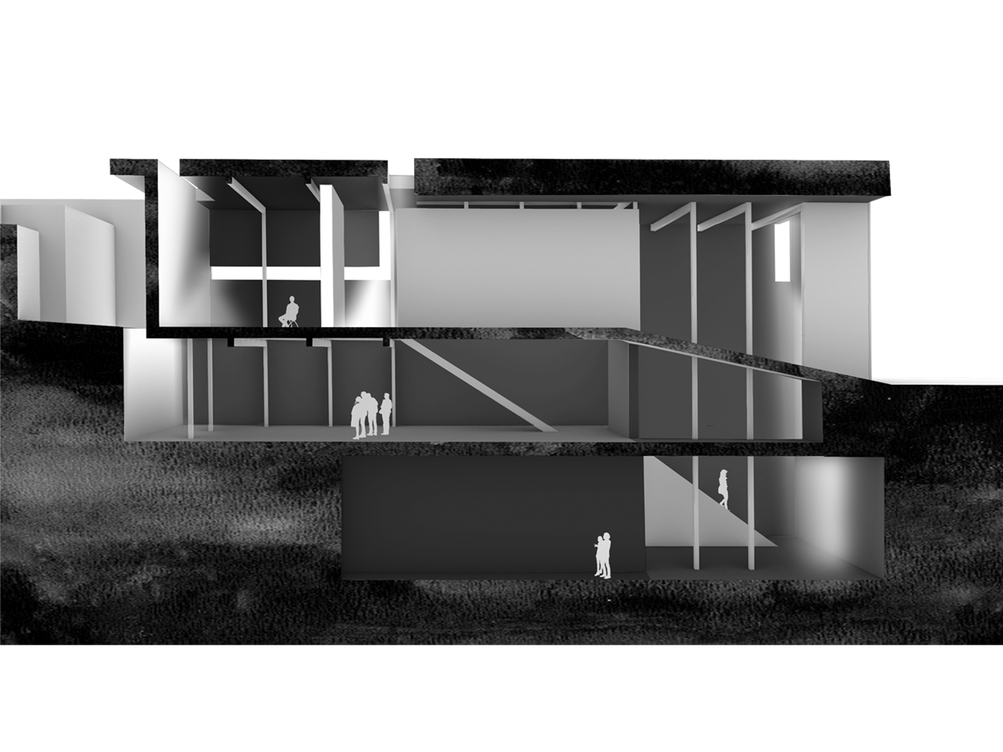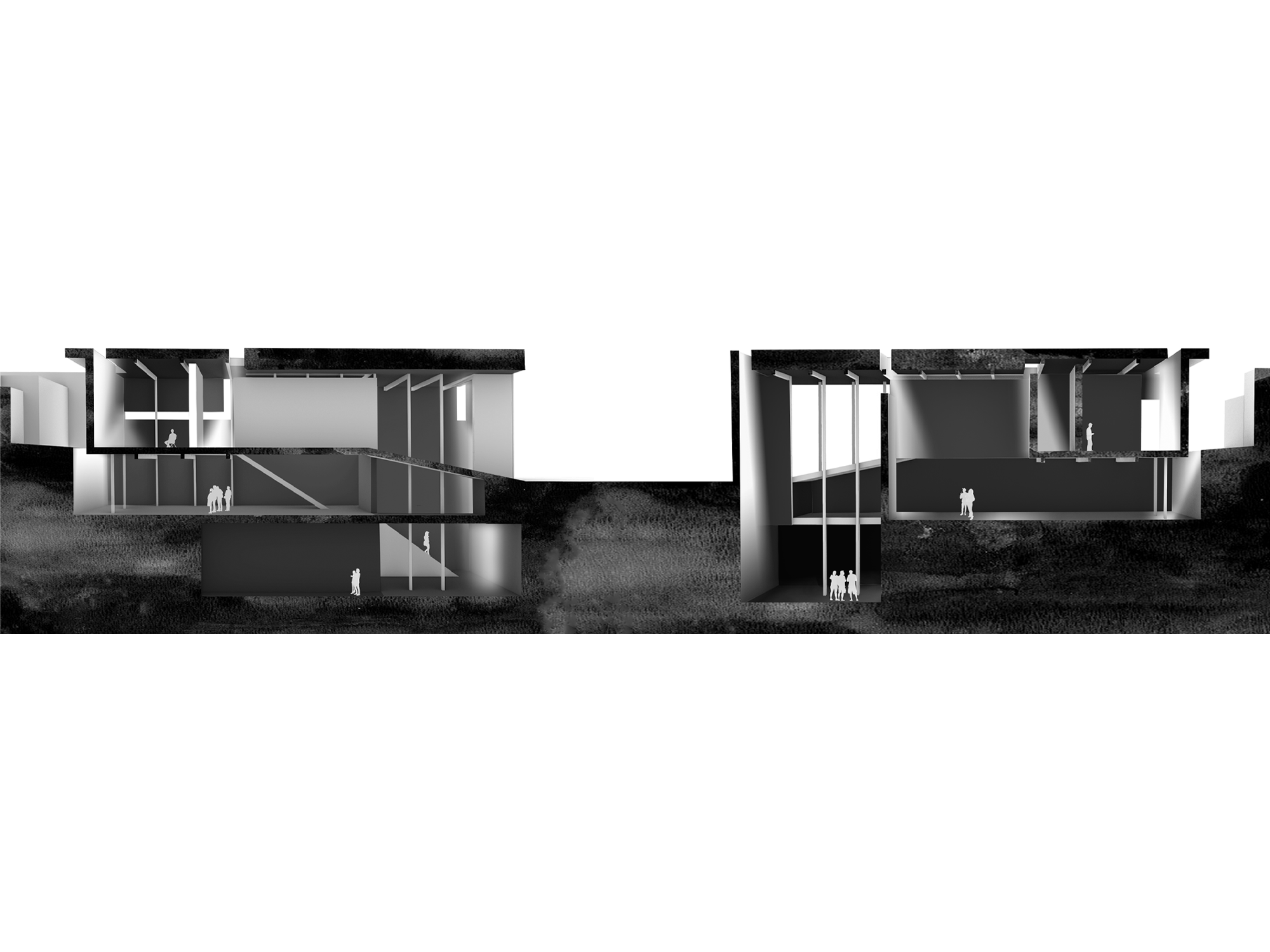 They then moved into simple model-making through paper cubes with distinct voids, combining four cubes into a single configuration and producing orthographic and isometric drawings. In the exhibition, these models formed a larger continuous mass that highlighted both individual work and collective structure.